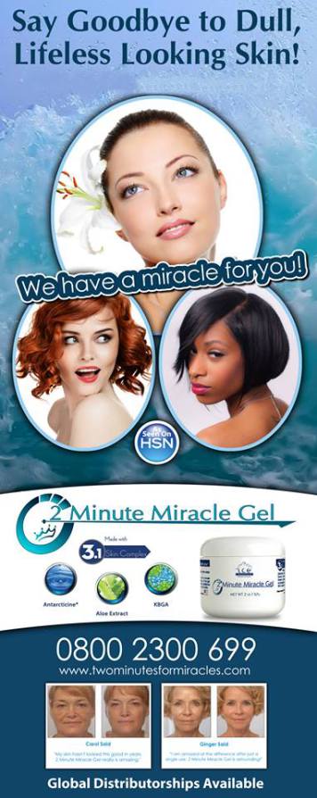 A great summary below about Two minute miracle gel. The product uses a very powerful and unique blend of the finest Aloe Vera Extract, Antarticine and KGBA (Klamath Blue Green Algae) The product gives you the benefits of a grain free super efficient exfoliant, cleanser, toner, pore minimizer, hydrator, primer and anti wrinke treatment in one simple to use two minute solution. results are similar to a full professional facial, and used daily the skin goes through an amazing transformation. These reults have to be experienced to be believed and are clinically proven.